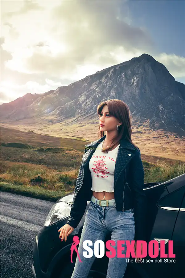 This natural casual outdoor travel realistic sex doll shows a slim natural figure with a casual travel style. The outdoor road trip scene delivers a relaxed and realistic lifestyle vibe.